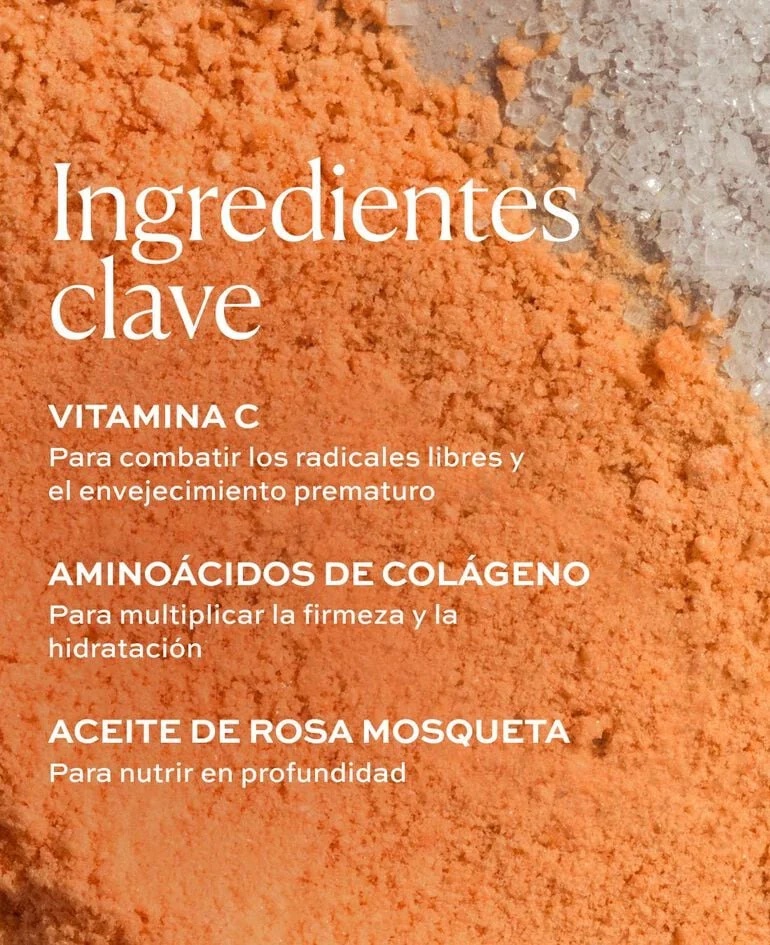 Para maximizar su acción antiedad, esta fórmula ultraligera y de acabado mate incluye distintas formas de vitamina C, que trabajan en sinergia con otros eficaces ingredientes, como el colágeno.